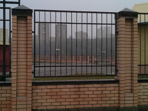 Сварные заборы с кирпичными столбами